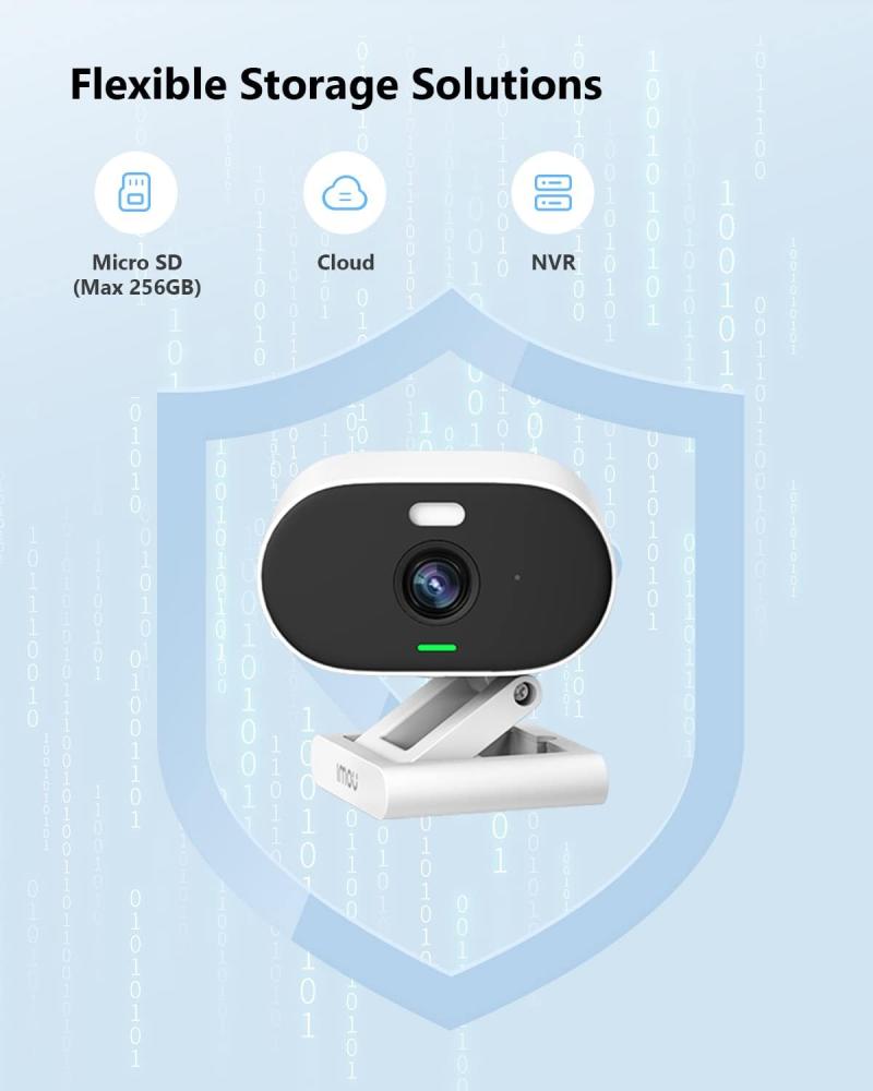 - حلول تخزين آمنة ومرنة: يتم تخزين مقاطع الفيديو والصور من خلال بطاقة micro SD (حتى 256 جيجا) أو اي مو Cloud أو NVR. يتوافق بنسبة 100% مع لائحة حماية البيانات اللائحة العامة لحماية البيانات لتعزيز حماية خصوصيتك. يمكنك أنت والمستخدم المصرح لك فقط الوصول إلى البيانات